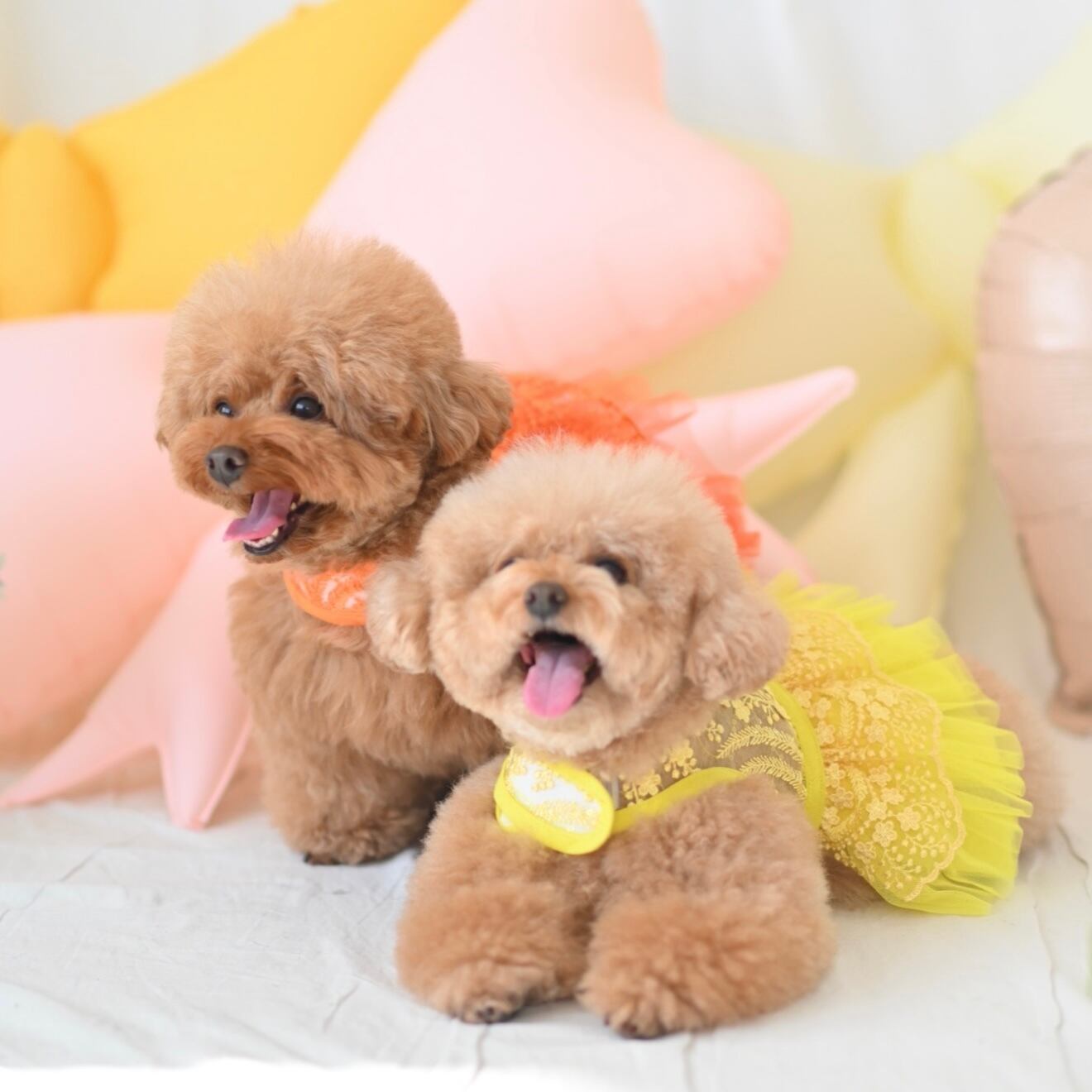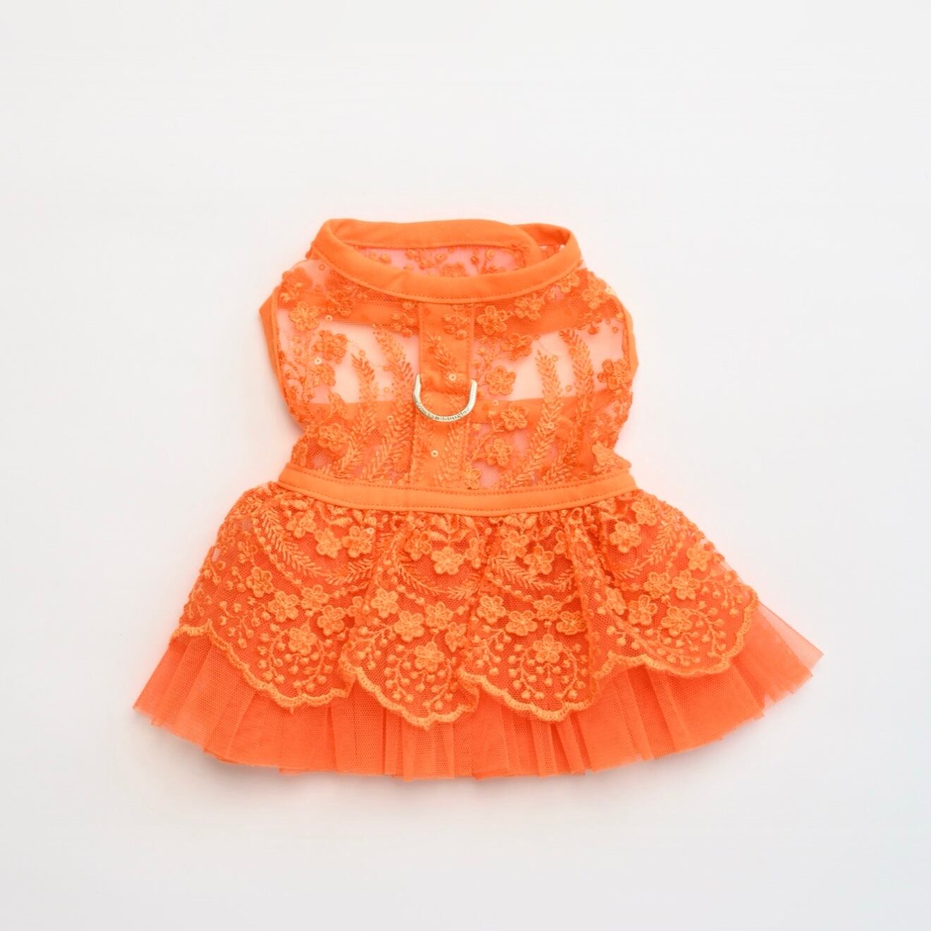 華やかさと気品を兼ね備えた唯一無二のスタイルで、真夏まで着こなせるシースルー刺繍メッシュと鮮やかなオレンジカラーが、愛犬の可愛らしさを引き立てます。
