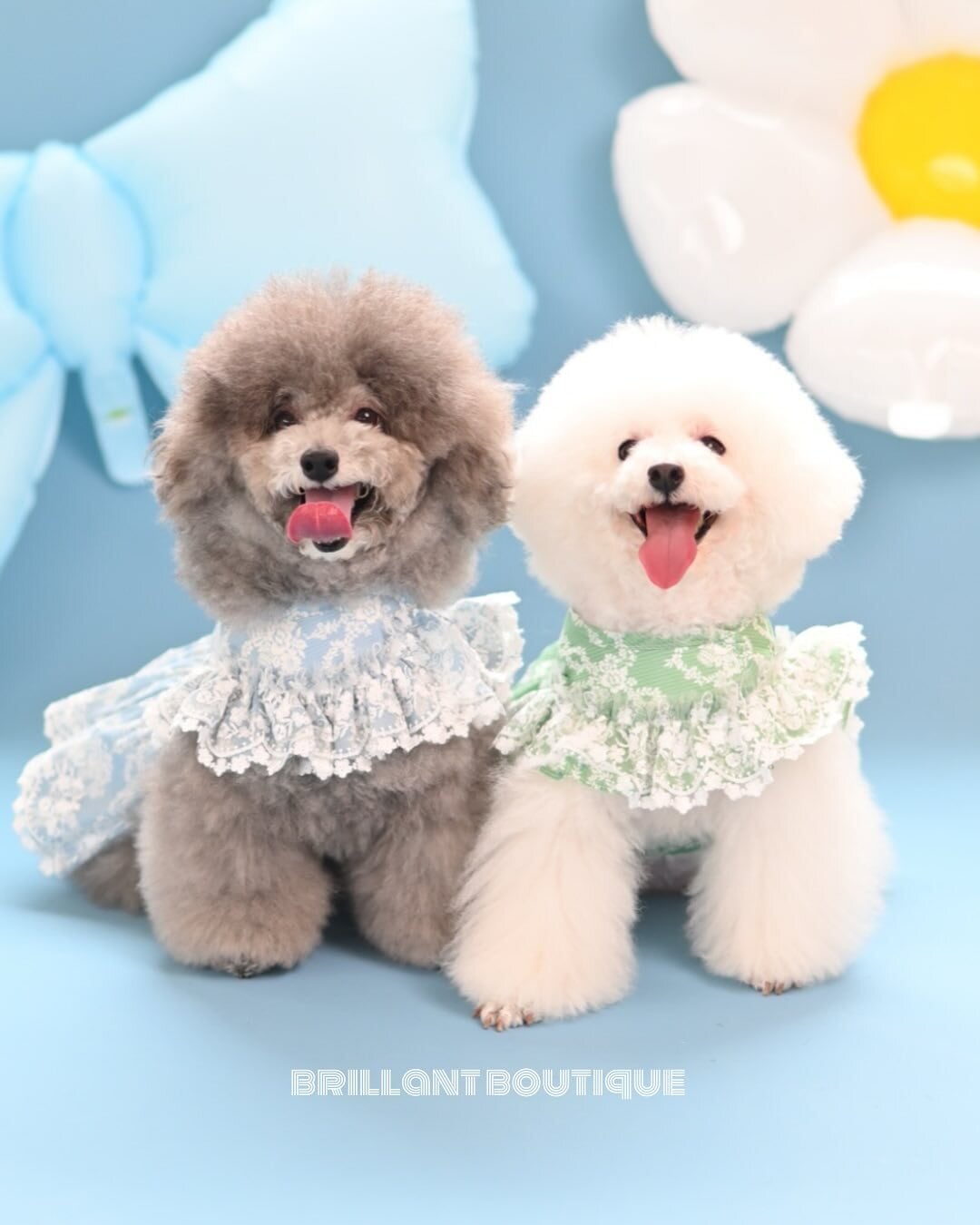 柔らかなミントグリーンが上品な清涼感を纏い、光を受けるたびにさりげなく浮かび上がる柄が、奥行きのある美しさを演出します。ふんわりと広がるスカートラインは、幾重にも重ねた生地によって軽やかさと華やかさを両立し、まるでクチュールドレスのような存在感を放ちます。